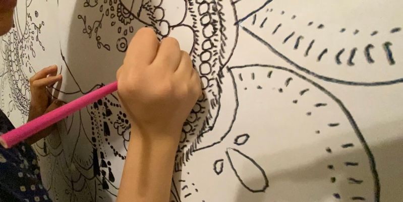 - A friend advised me that I can make a digital drawing and then use carbon paper to trace it on the wall, and color the Mandala after.
